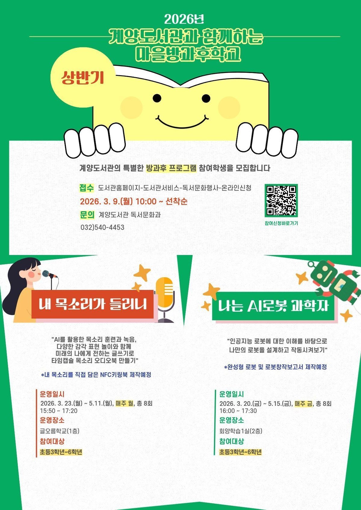 [충청뉴스큐] 인천광역시교육청계양도서관은 관내 초등학생과 청소년의 배움과 돌봄을 지원하기 위해 3월부터 11월까지 ‘도서관과 함께하는 마을방과후학교’를 운영한다.