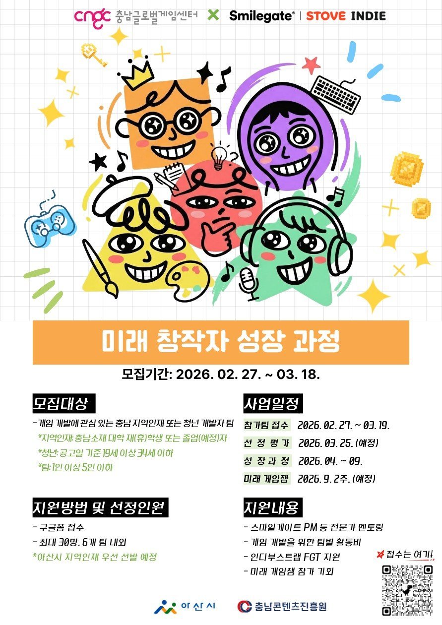 [충청뉴스큐] 충남콘텐츠진흥원 산하 충남글로벌게임센터가 아산시와 함께 '미래 창작자 양성 과정'참가자를 모집한다.