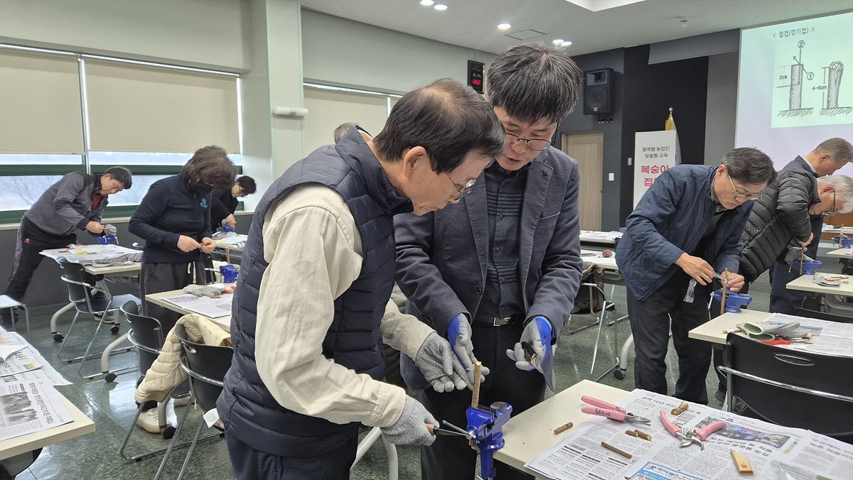 [충청뉴스큐] 대구광역시 농업기술센터가 과수 접목 기술을 현장에서 직접 익히는 실습 교육을 실시하고 지역 농업인의 묘목 자급 역량 강화에 나섰다.