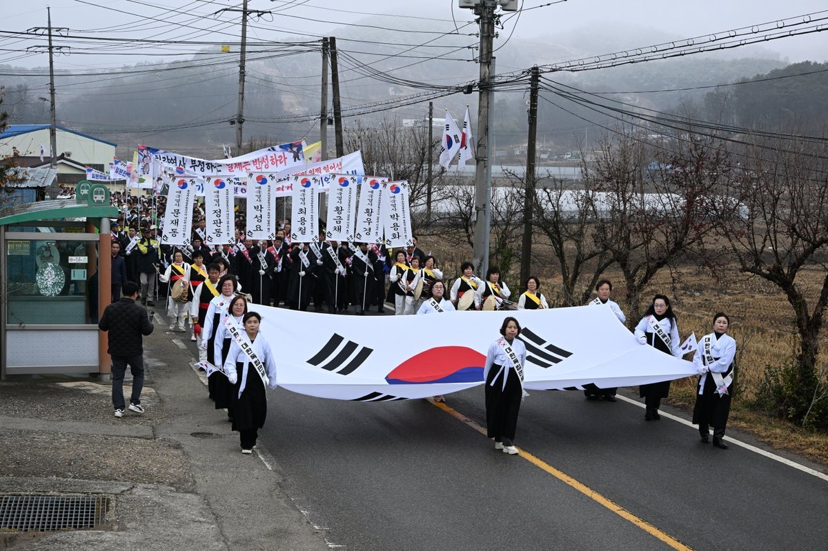 참가자들은 충화면행정복지센터에서 출발해 독립운동의거 기념공원까지 태극기를 들고 행진하며 1919년 그날의 함성을 재현했다.