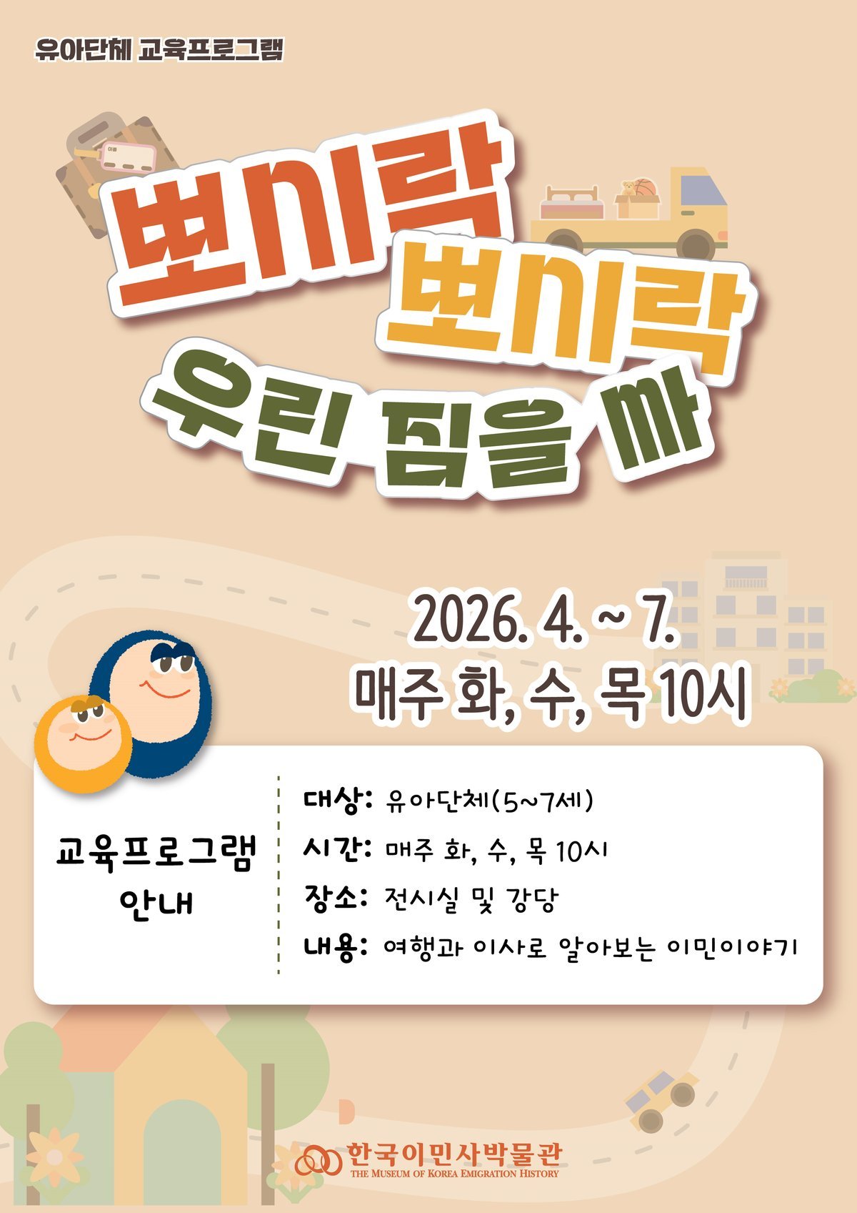 [충청뉴스큐] 인천광역시 한국이민사박물관은 유아 단체교육 ‘뽀시락 뽀시락 우린 짐을 싸’를 운영한다고 밝혔다.