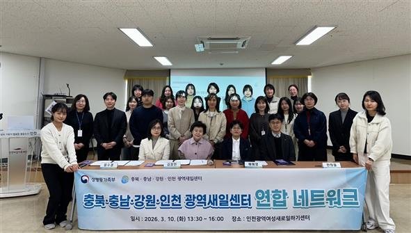 [충청뉴스큐] 인천여성가족재단 인천광역여성새로일하기센터은 2026년 3월 10일 오후 1시 30분, 재단 소강당에서 강원광역여성새로일하기센터, 충북광역여성새로일하기센터, 충남광역여성새로일하기센터와 함께 '중부권 광역여성새로일하기센터 연합 네트워크 구축을 위한 다자간 업무협약'을 체결했다.