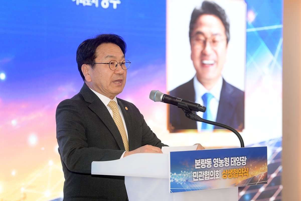 협약식에서는 '본량동 영농형 태양광 민관협의회'와 국회, 농림축산식품부, 기후에너지환경부 등 관계기관이 사업 추진을 위한 협력 합의문에 서명했다.