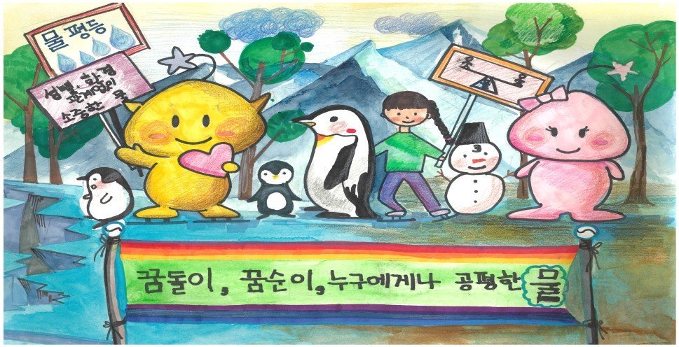 그림 부문에서 신예안 학생의 ‘지켜요 모두에게 공평한 물’과 김휘중 학생의 ‘누구나 깨끗한 물을 먹을 권리가 있어요’가 기후에너지환경부장관상을 수상했다.