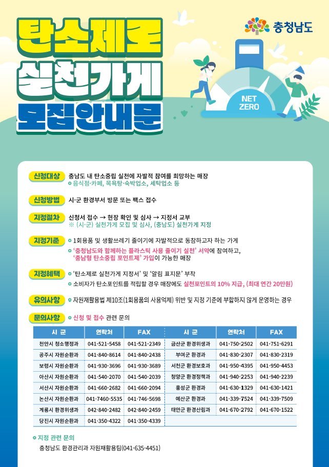 지정 기준은 1회용품 및 생활쓰레기 줄이기에 자발적으로 동참하고 충남형 탄소중립 포인트제 가입이 가능하면 된다.
