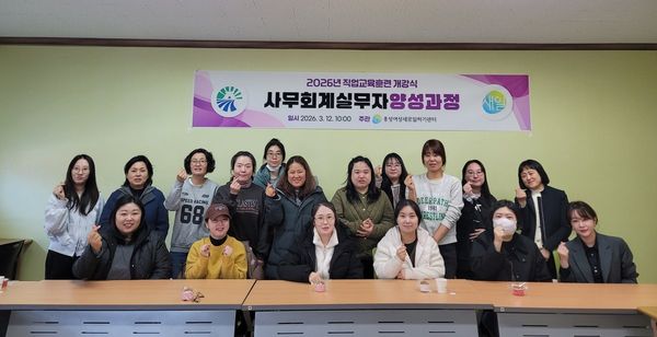 [충청뉴스큐] 홍성군은 홍성여성새로일하기센터가 지난 12일 교육생과 관계자 등 20여명이 참석한 가운데 2026년 직업교육훈련 ‘사무회계실무자양성과정’에 대해 개강식을 진행했다고 밝혔다.