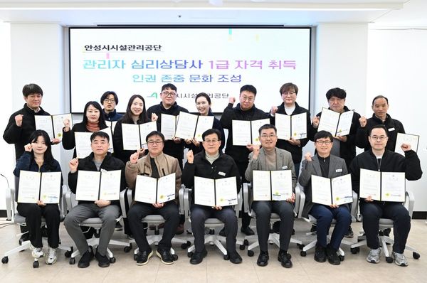 [충청뉴스큐] 안성시시설관리공단은 조직 내 인권존중 문화 정착과 관리자 상담 역량 강화를 위해 관리자 대상 심리상담사 자격 취득 교육을 실시하고 전원이 자격을 취득했다고 밝혔다.