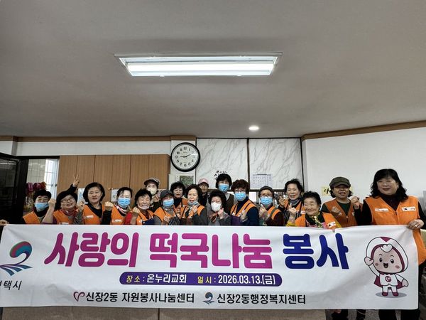 [충청뉴스큐] 평택시 신장2동 자원봉사 나눔센터는 지난 13일 온누리교회에서 사랑의 떡국 나눔 봉사활동을 진행했다.