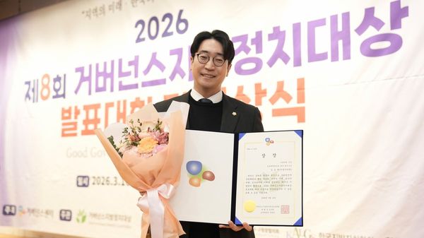 [충청뉴스큐] 김도현 안양시의원이 지난 16일 국회도서관에서 개최된 '2026 제8회 거버넌스지방정치대상'에서 지방의원부문 최우수상을 수상했다.