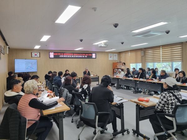 진상호 신관동장이 직접 교육을 진행하며 하천구역 관리의 중요성과 주민 협조의 필요성에 대해 설명했다.