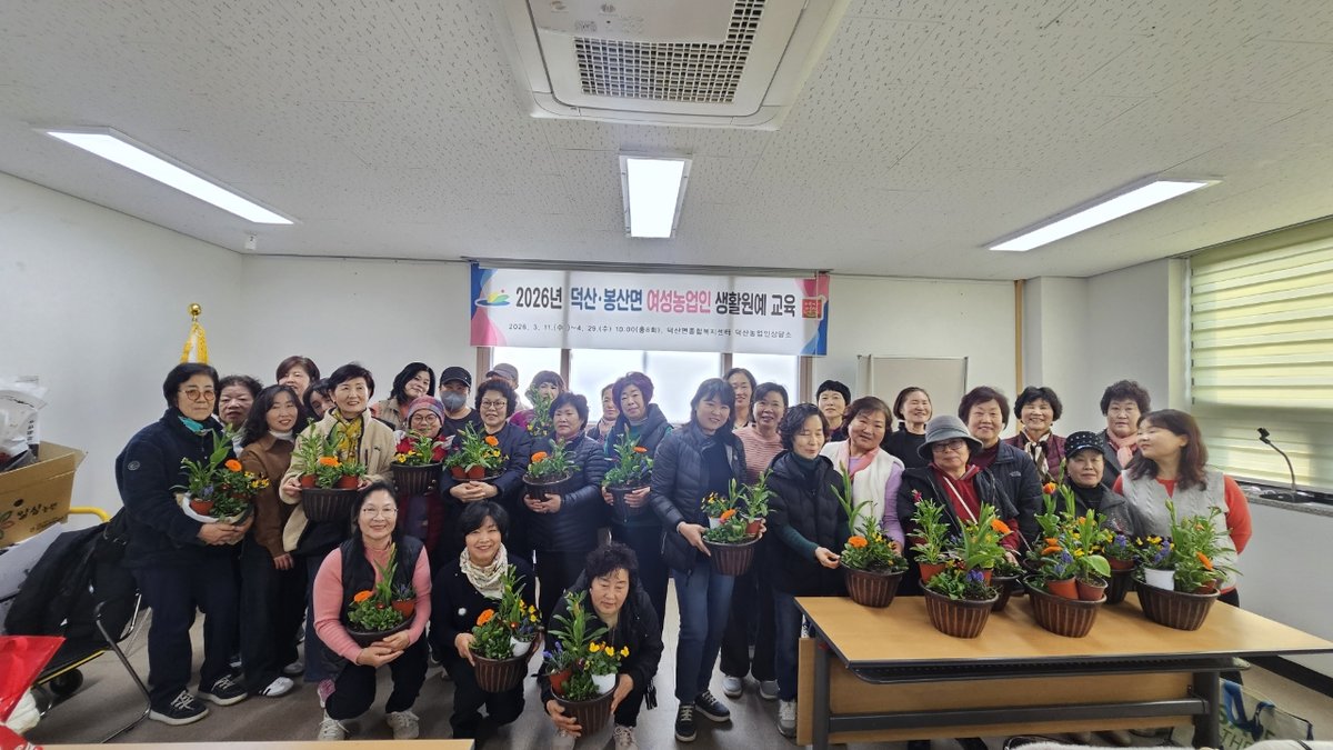 이번 교육은 덕산면과 봉산면 여성농업인 30명을 대상으로 봄꽃과 관엽식물, 서양난 등을 활용한 다양한 작품 활동을 통해 꽃을 매개로 한 치유와 삶의 질 향상을 돕기 위해 마련됐다.