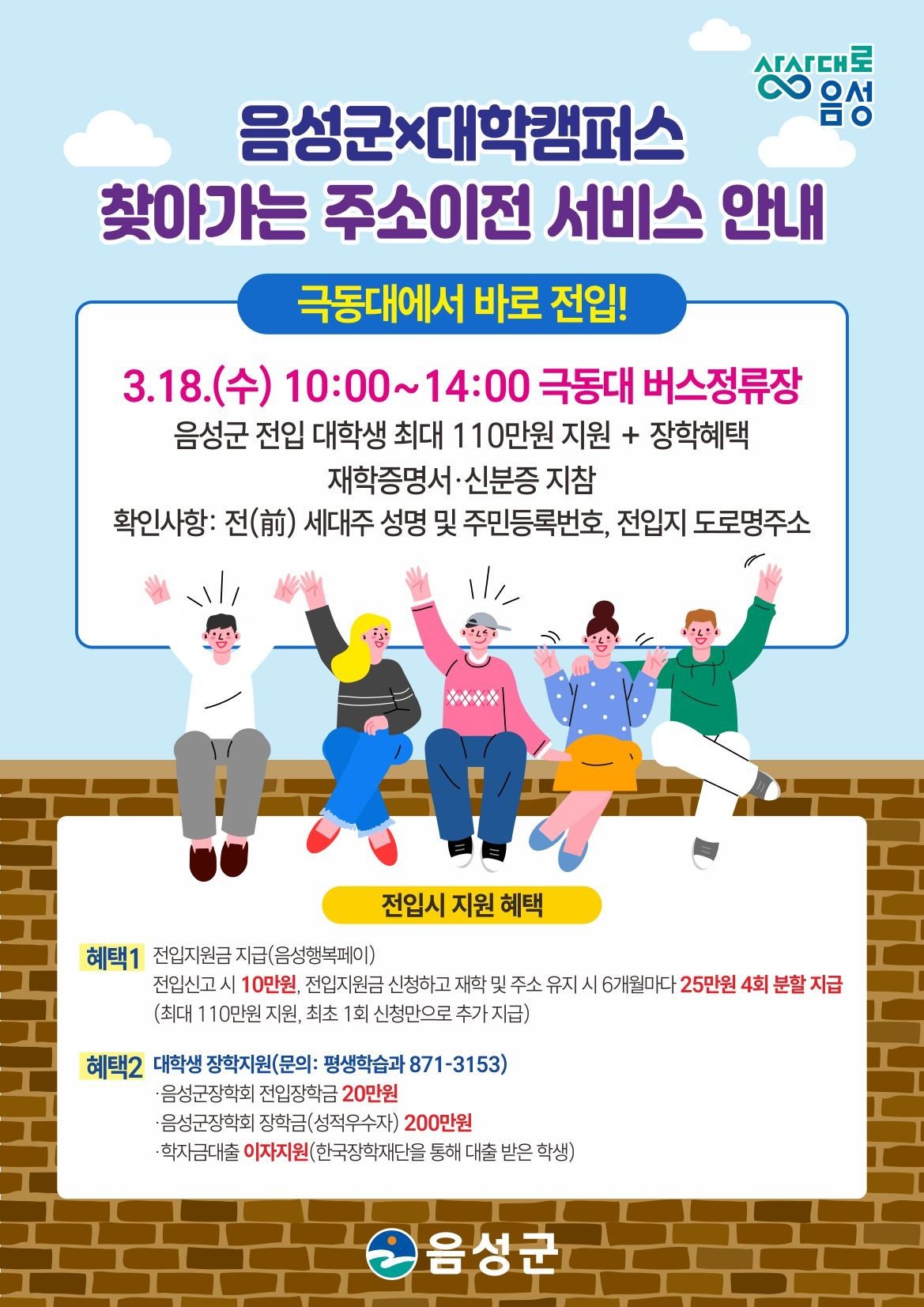 음성군으로 주소를 이전하는 대학생에게는 최대 110만원의 혜택이 제공된다.