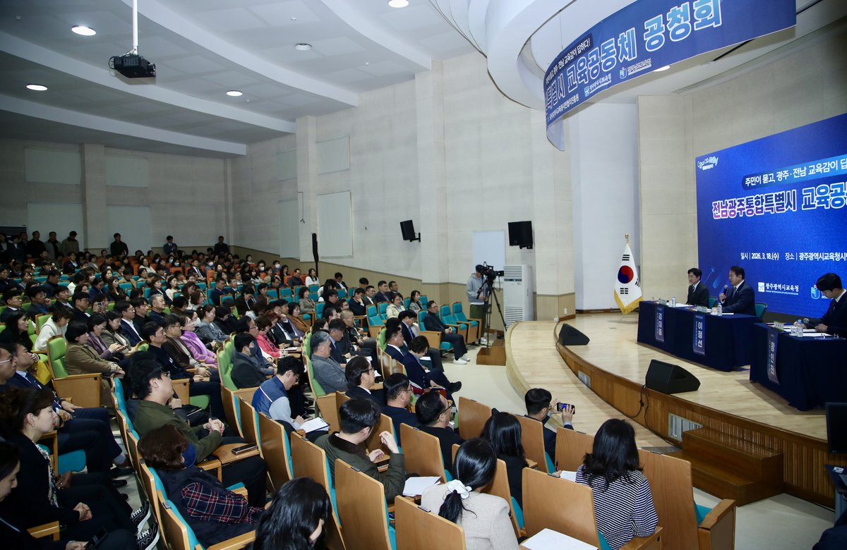 [충청뉴스큐] 전라남도교육청 광주광역시교육청은 18일 광주교육청 시민협치진흥원 대강당에서 지역 주민 의견 수렴을 위한 '전남광주통합특별시 교육공동체 공청회'를 개최했다.