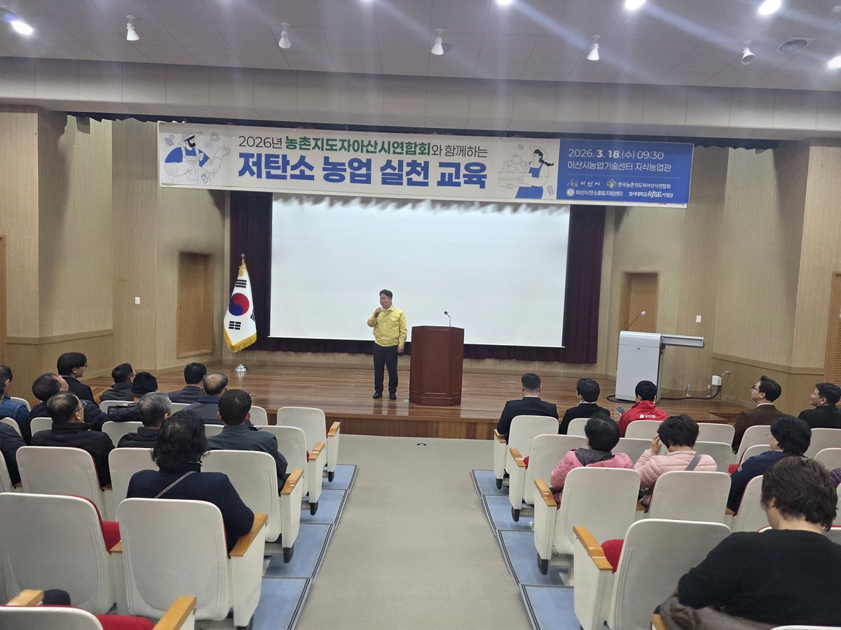 [충청뉴스큐] 농촌지도자아산시연합회는 지난 18일 아산시 농업기술센터에서 ‘저탄소 농업 실천 교육’을 열고 기후위기에 대응하는 탄소중립 농업 확산에 나섰다고 밝혔다.