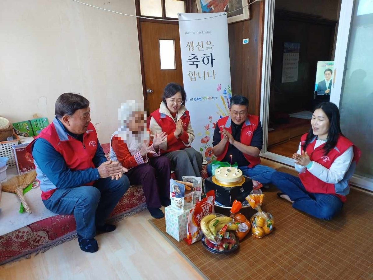 [충청뉴스큐] 인주면 행복키움추진단은 지난 19일 관내 90세 이상 독거 어르신을 대상으로 생신상 차려드리기 행사를 열었다.