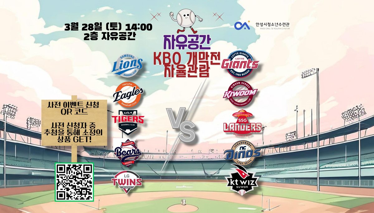 [충청뉴스큐] 안성시청소년수련관은 프로야구 개막을 맞아 오는 3월 28일 수련관 자유공간에서 청소년을 대상으로 ‘야구 자율관람 이벤트’를 운영한다고 밝혔다.