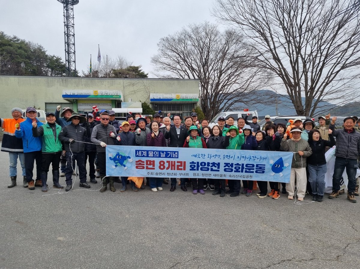 [충청뉴스큐] 충북 괴산군 청천면은 지난 22일 송면지역 8개 리 마을 주민들이 '세계 물의 날'을 맞아 화양천 일원에서 하천 정화 활동을 전개했다고 밝혔다.