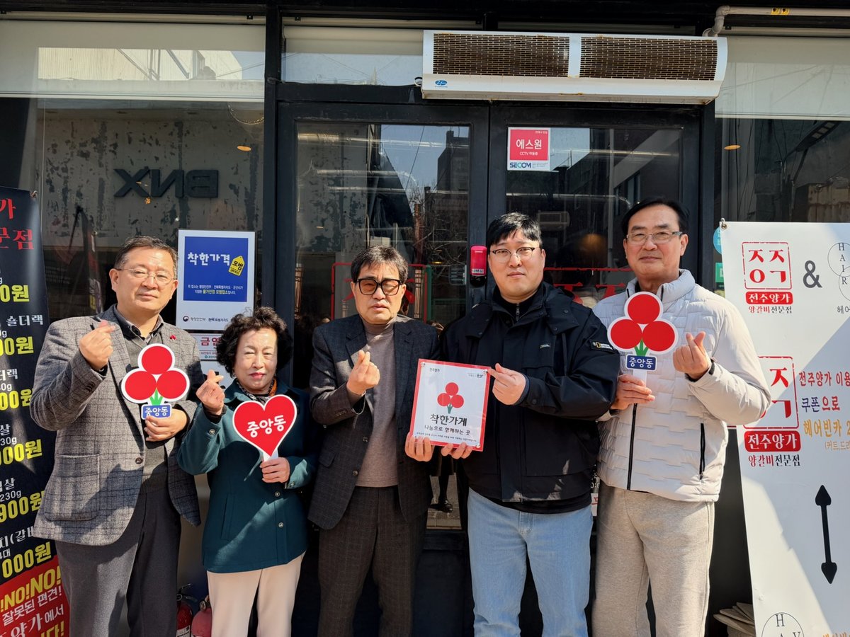 [충청뉴스큐] 군산시 중앙동은 24일 “전주양가”를 방문해 이웃사랑을 실천하는 ‘착한가게’현판을 전달했다고 밝혔다.