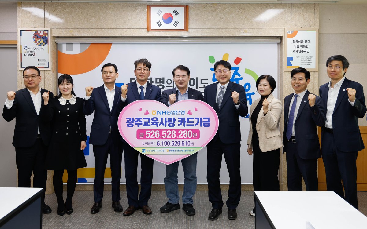 [충청뉴스큐] 광주시교육청은 지난 20일 본청 상황실에서 NH농협은행으로부터 지난해 광주교육사랑카드 적립금 5억2천652만원을 전달받았다.