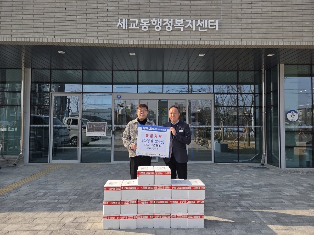 [충청뉴스큐] 고고컴퍼니는 지난 25일 평택시 세교동 행정복지센터를 방문해 지역 내 취약계층을 위해 삼겹살 20 을 기부했다.