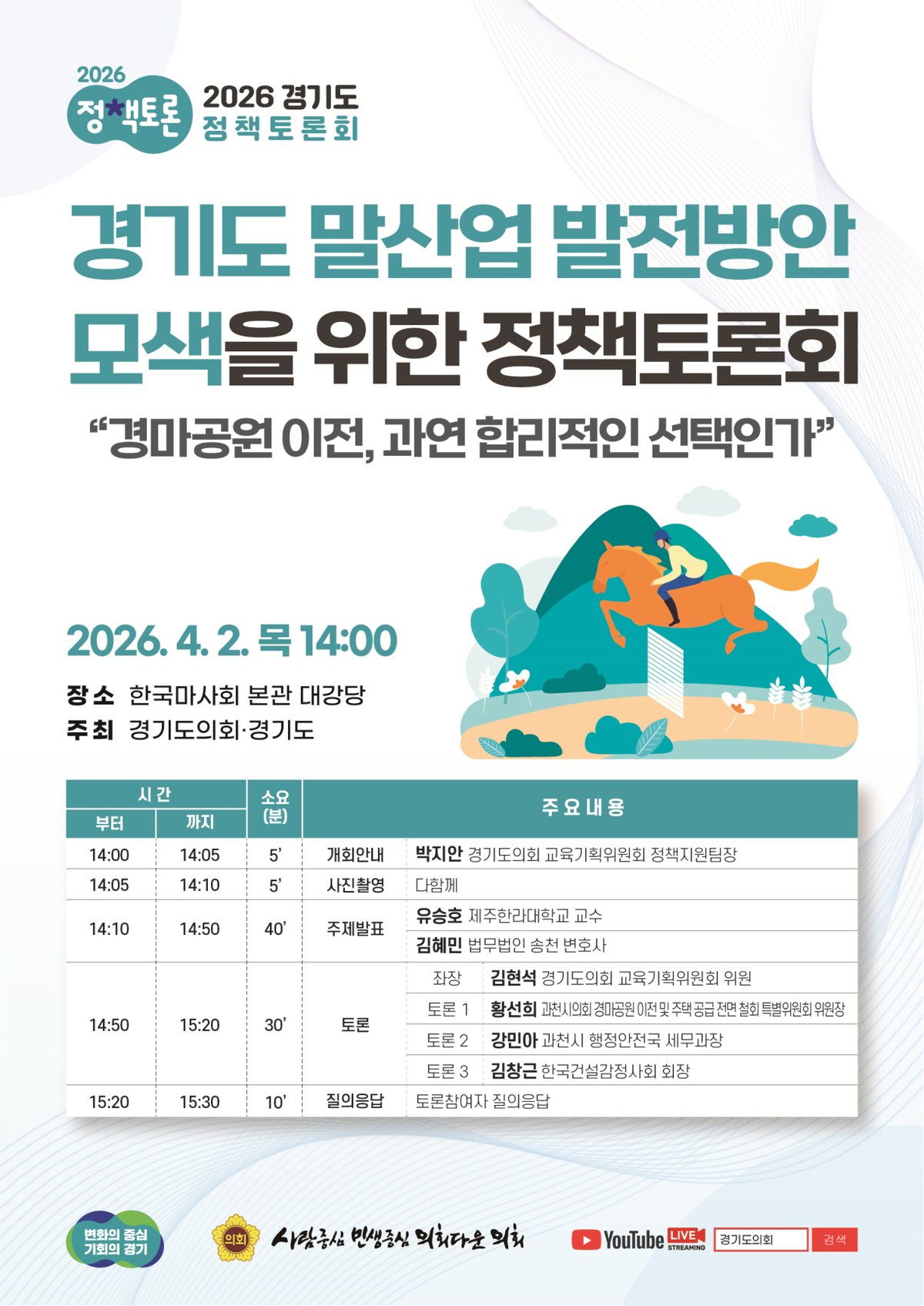 행사는 경기도의회와 경기도가 공동 주최하며 김현석 의원이 좌장을 맡아 진행한다.