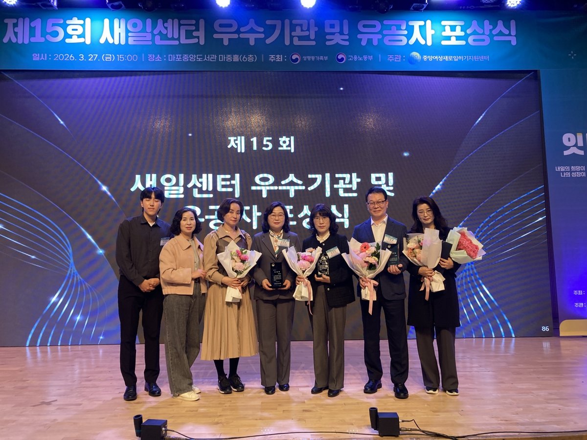광주광역시는 27일 서울 마포중앙도서관에서 열린 '제15회 여성새로일하기센터 우수기관 및 유공자 포상식'에서 2025년 새일센터 평가 우수기관으로 선정, 성평등가족부 장관 표창을 수상했다.
