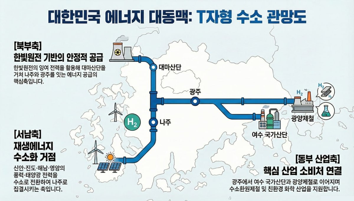 수소 인프라는 전남 광주를 중심으로한 T자형 파이프라인으로 구축된다.