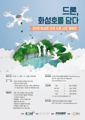 [충청뉴스큐] 화성시는 화성호 인근의 생태 다양성을 전국에 알리고, 시민들에게 보전 가치를 확산하고자 ‘2019 화성호 전국 드론 사진 공모전’을 연다. 사단법인 한국드론산업협회가 주최하고, 화성시가 후원하는 이번 공모전은 ‘드론, 화성을 담다’를 주제로, 2일부터 오는 9월 2일까지 작품을 받는다.
