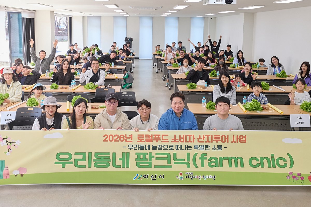 [충청뉴스큐] 아산시먹거리재단은 지난 28일 탕정신도시총연합회 가족 60여명과 함께한 '우리동네 팜크닉'을 성황리에 마치며 2026년도 로컬푸드 산지투어 사업의 힘찬 첫발을 내디뎠다.