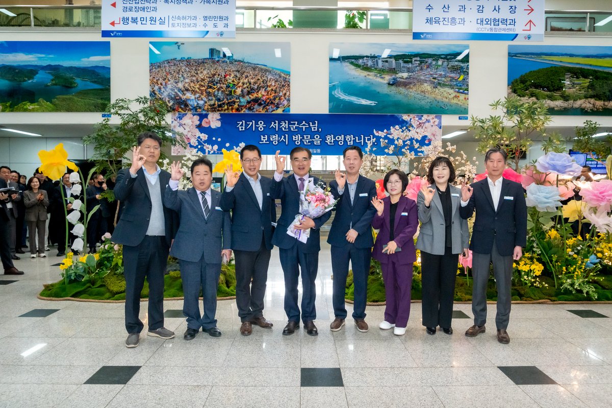 이날 김기웅 군수는 보령시청에 도착해 직원들의 환영 속에 공식 일정을 시작했다.