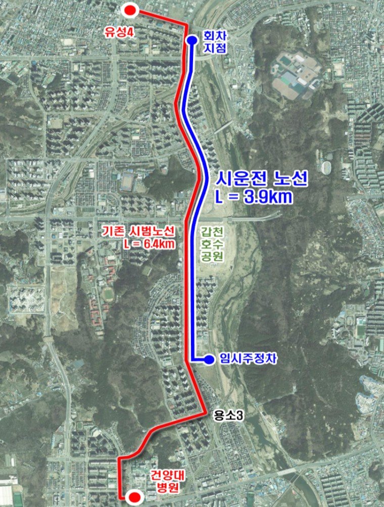 이날 현장에서는 차량 내 외부 장치 상태를 확인하는 한편 갑천생태호수공원부터 용반네거리까지 편도 2.6km 구간을 왕복하는 주행시험을 병행해 실제 도로 환경에서의 주행 성능과 안전성을 종합적으로 점검했다.