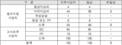 평가결과, 2017년도 장애인방송 편성의무 목표를 모두 달성한 사업자는 전체 155개사 중 149개사이며, 미달성 사업자는 부산문화방송, 엠비씨경남, 엠비씨강원영동, 원주문화방송, 전주문화방송, 춘천문화방송등 6개사인 것으로 나타났다.