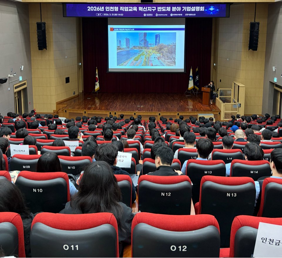 [충청뉴스큐] 인천광역시교육청은 지난 31일 인천경제자유구역청에서 관내 직업계고 학생 300여명을 대상으로 ‘2026 직업교육 혁신지구 반도체 분야 기업설명회’를 개최했다.