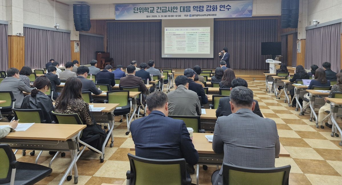 광주서부교육지원청 백기상 교육장은 "교내 긴급상황의 경우 초기 대응에 따라 피해 정도가 달라질 수 있다"며 "신속한 현장 조치와 지원을 강화해 학생과 교직원이 안심하고 생활할 수 있는 안전망을 구축하겠다"고 말했다.