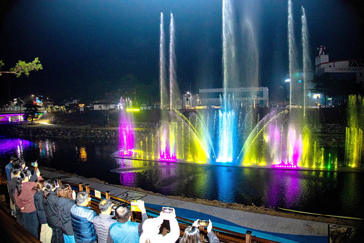 이날 개장한 음악분수는 음악에 맞춰 물줄기가 다양한 형태로 연출되고 야간에는 조명이 더해져 화려한 경관을 선보였다.