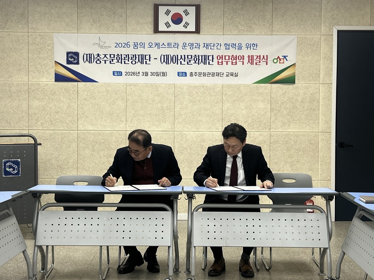[충청뉴스큐] 아산문화재단과 (재)충주문화관광재단은 '충청지역 아동 청소년 대상 문화예술 교육 활성화'를 위한 업무협약을 체결했다고 밝혔다.