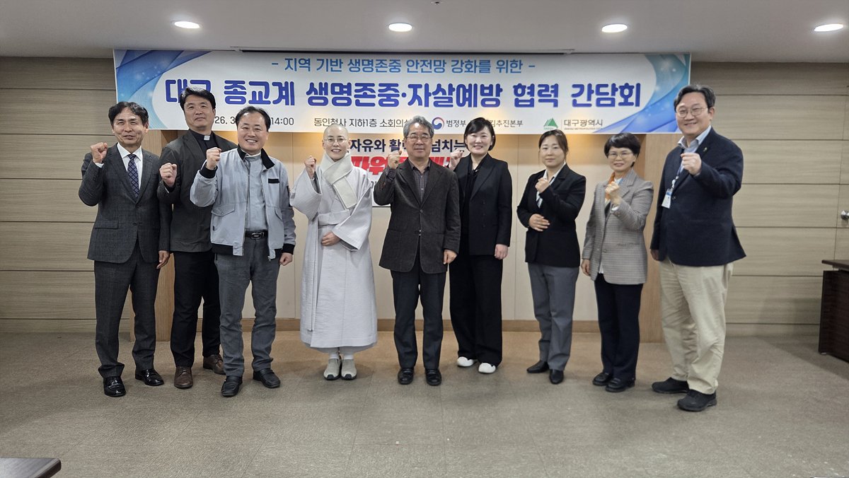 [충청뉴스큐] 대구광역시는 지난 3월 31일 범정부 생명지킴추진본부와 함께 지역 종교계와 생명존중·자살예방 협력 간담회를 개최하고 시민 대상 현장 홍보활동을 실시했다.
