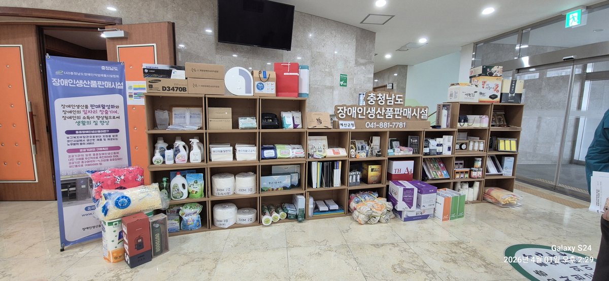 전시장에는 코팅장갑, 방향제, 티슈, 위생랩, 복사용지 등 생활 사무용품이 전시됐으며 예산군 장애인직업재활시설인 예산군장애인보호작업장에서 생산한 방향제와 디퓨저도 함께 선보여 의미를 더했다.