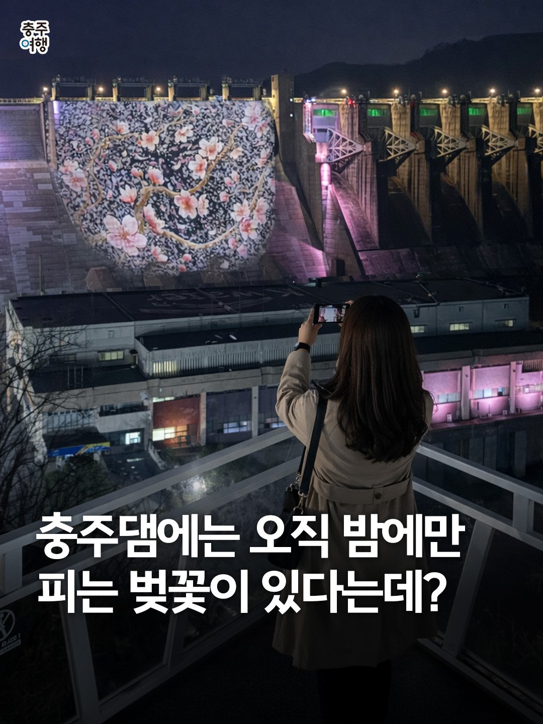 밤에 더 빛나는 충주, ‘충주댐 미디어파사드’상영 벚꽃 나들이의 대미는 충주댐의 화려한 야경이 장식한다.