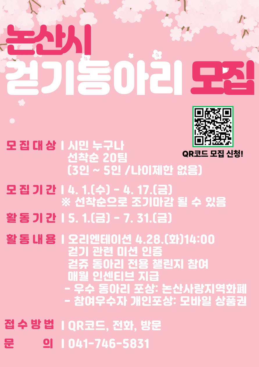 [충청뉴스큐] 논산시는 오는 17일까지 ‘비대면 걷기동아리’ 참여자를 모집한다.