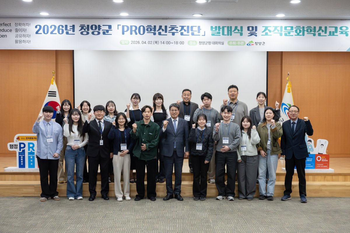 군은 지난 2일 군청 대회의실에서 김돈곤 군수 주재로 ‘2026년 청양군 PRO혁신추진단 발대식’을 개최하고 조직 내 다양한 구성원이 참여하는 협업 기반 혁신 활동을 본격화할 것임을 밝혔다.