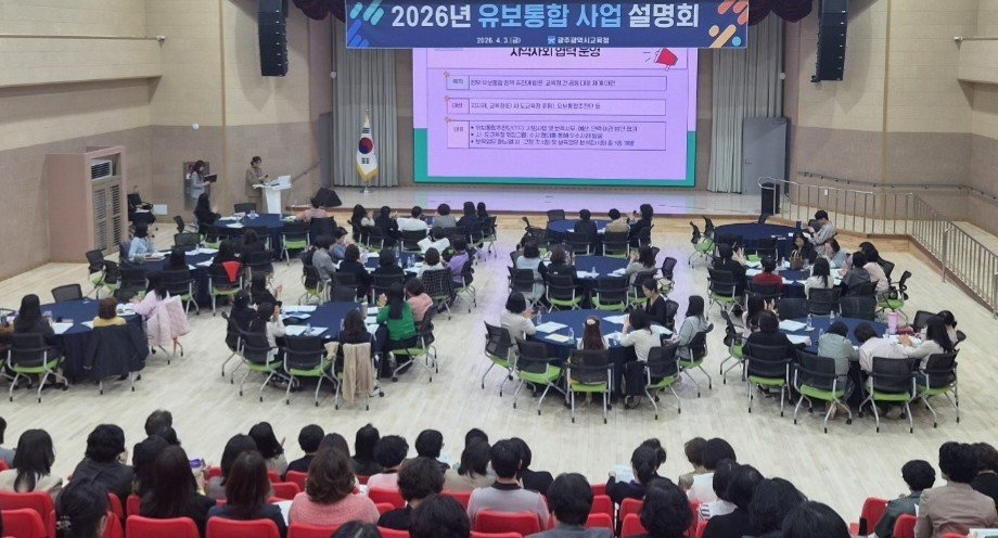 [충청뉴스큐] 광주시교육청은 3일 광주AI교육원 대강당에서 유치원 및 어린이집 원장 250여명을 대상으로 '2026 유보통합 사업 설명회'를 개최했다.