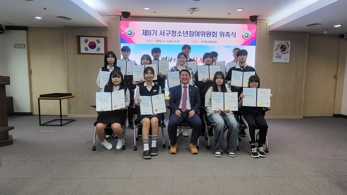 [충청뉴스큐] 대전 서구는 구청 장태산실에서 ‘제 9기 서구 청소년참여위원회’ 위촉식을 개최했으며 이들이 본격적인 활동을 시작했다고 6일 밝혔다.