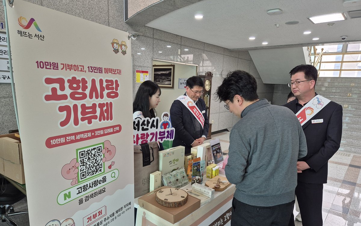이날 서산시 관계 공무원들은 공사 직원 및 방문 민원인을 대상으로 제도의 취지와 참여 방법, 세액공제 혜택, 다양한 답례품 등을 알기 쉽게 안내하며 적극적인 홍보를 펼쳤다.