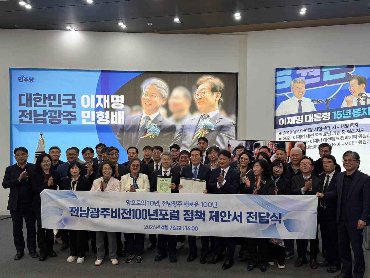 [충청뉴스큐] '전남광주비전100년포럼‘은 지난 7일 더불어민주당 전남광주통합특별시장 경선 후보인 민형배 국회의원에게 정책 제안서를 공식 전달했다고 8일 밝혔다.