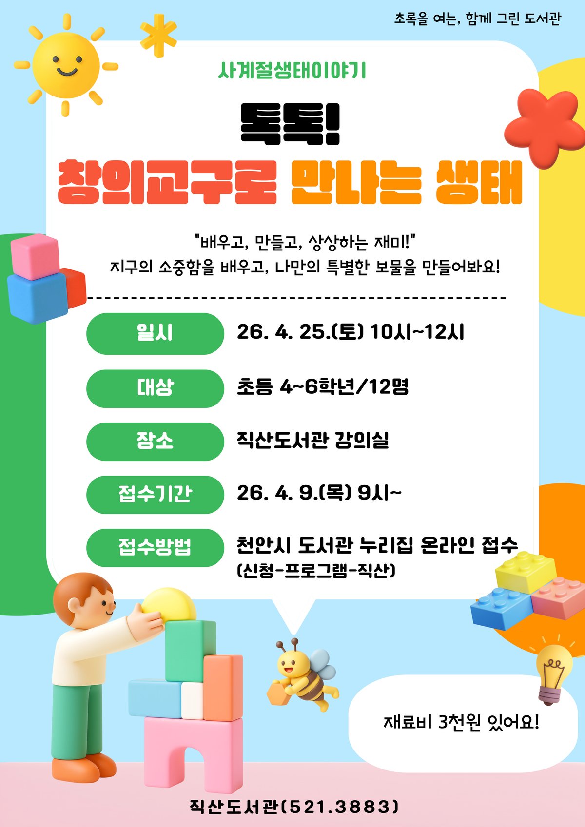 천안직산도서관 ‘톡톡 창의교구로 만나는 생태’홍보문.