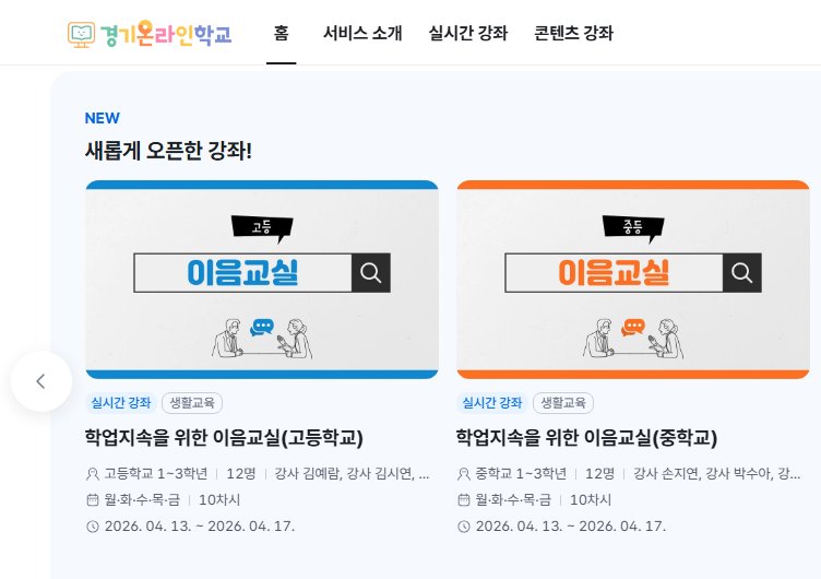 수강신청과 강좌 세부내용은 경기온라인학교 홈페이지를 통해 확인할 수 있다.