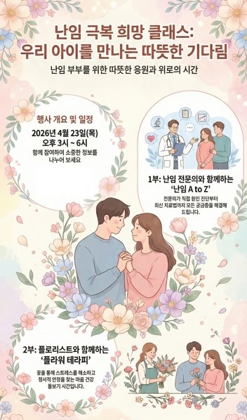 평택보건소 관계자는 “난임 시술이 보편화됐지만, 치료 과정에서 부부가 겪는 심리적 고립감과 정보의 불균형은 여전히 해결해야 할 과제”며 “이번 교육이 전문적인 의학 정보와 꽃꽂이를 통한 정서적 치유를 동시에 제공해, 난임 부부들이 건강한 임신을 향해 한 발 더 나아가는 소중한 발판이 되길 바란다”고 밝혔다.