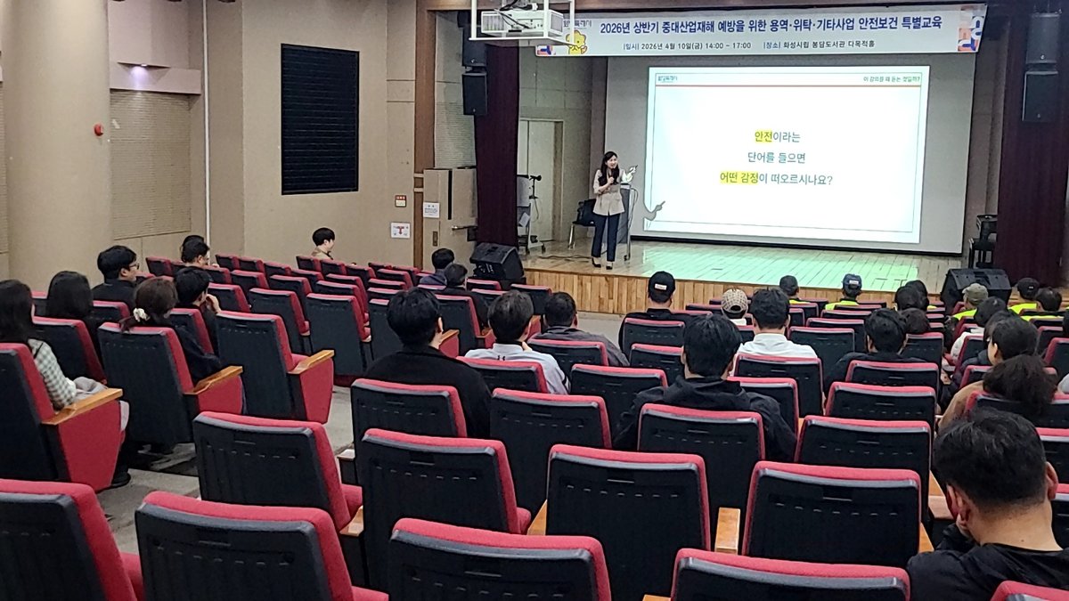 [충청뉴스큐] 화성특례시는 10일 용역 위탁 관계부서 담당자와 수급업체 근로자를 대상으로 ‘2026년 상반기 중대산업재해 예방을 위한 용역 위탁 기타사업 안전보건 특별교육’을 실시했다.