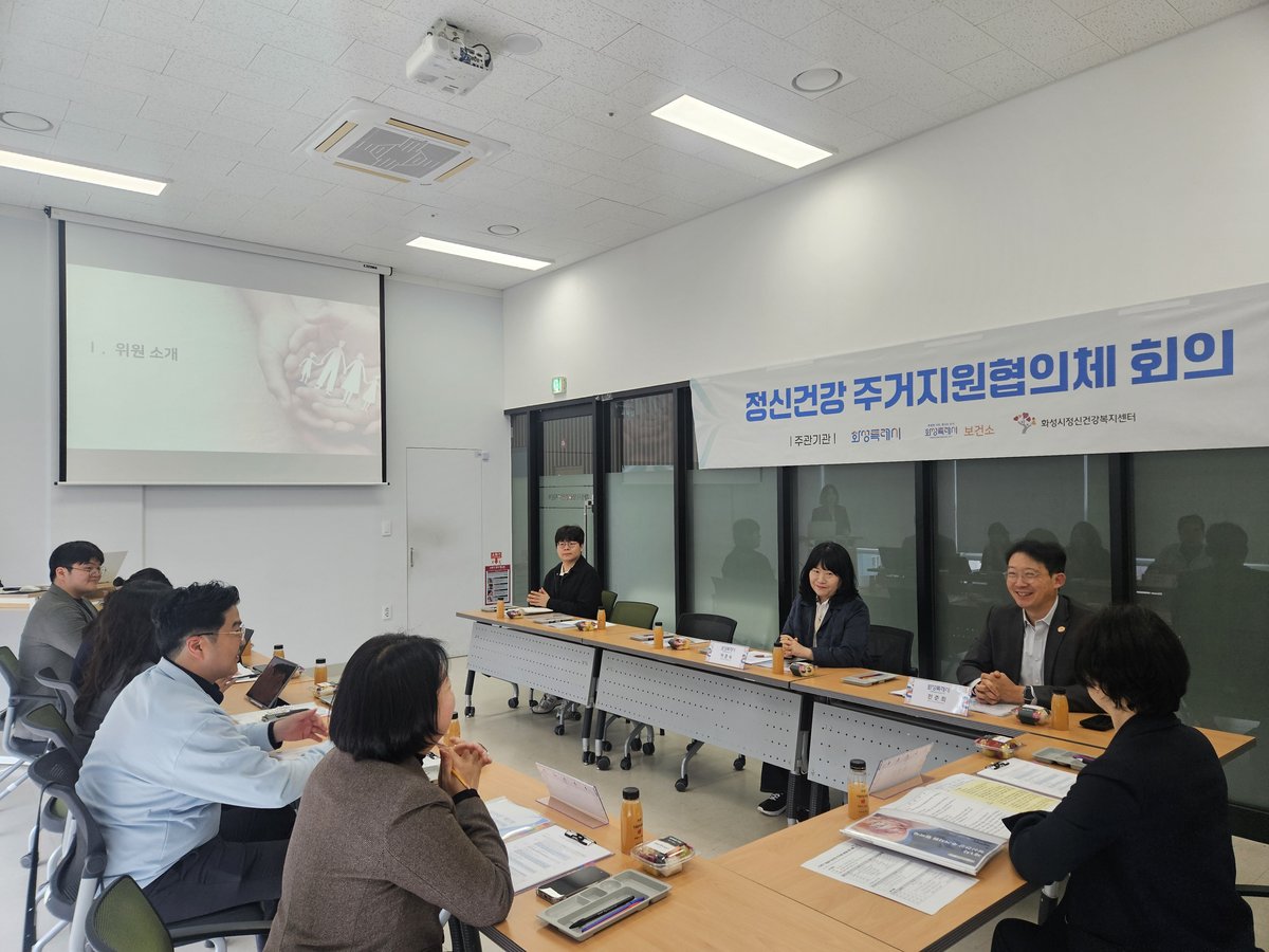 [충청뉴스큐] 서부보건소 보건정책과 정신건강팀과 장 : 송경수 팀 장 : 유미현 담 당 : 이예진 사진자료 화성특례시는 10일 정신질환자의 안정적인 지역사회 정착을 지원하기 위해 화성시정신건강복지센터 봉담분소에서 ‘제1차 정신건강 주거지원 협의체 회의’를 개최했다.